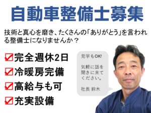 当店では、作業の正確さや仕上がりの美しさだけでなく、誠実で丁寧な接客を重視し、お客様に「お願いしてよかった」と思っていただける整備工場を目指しております。
